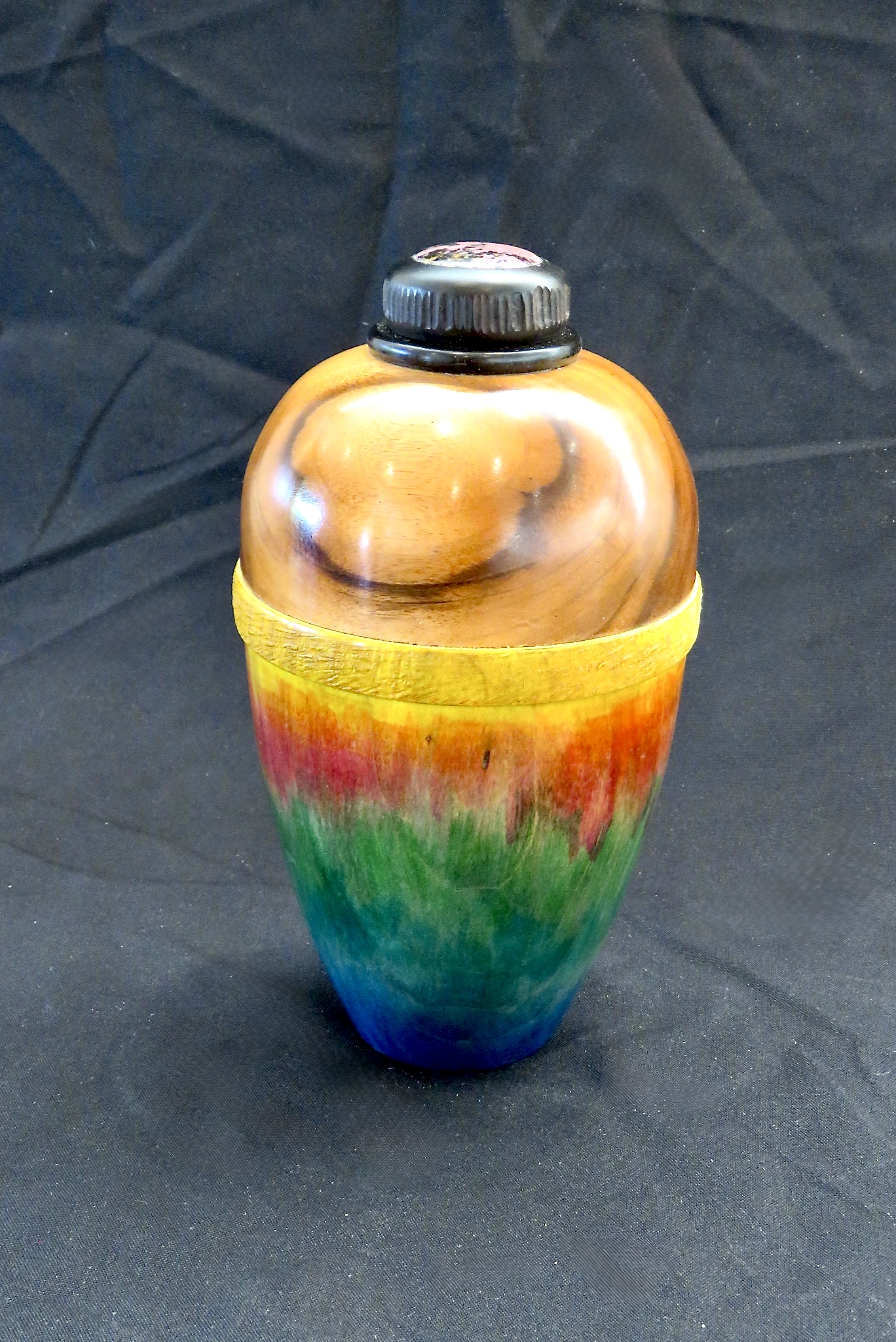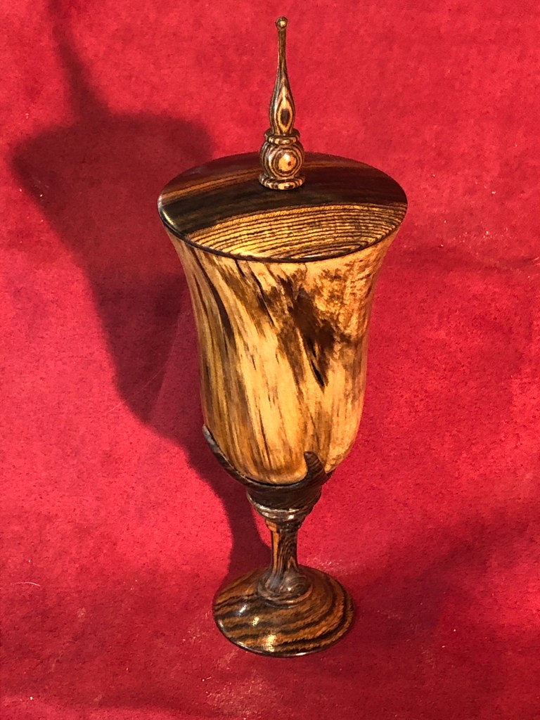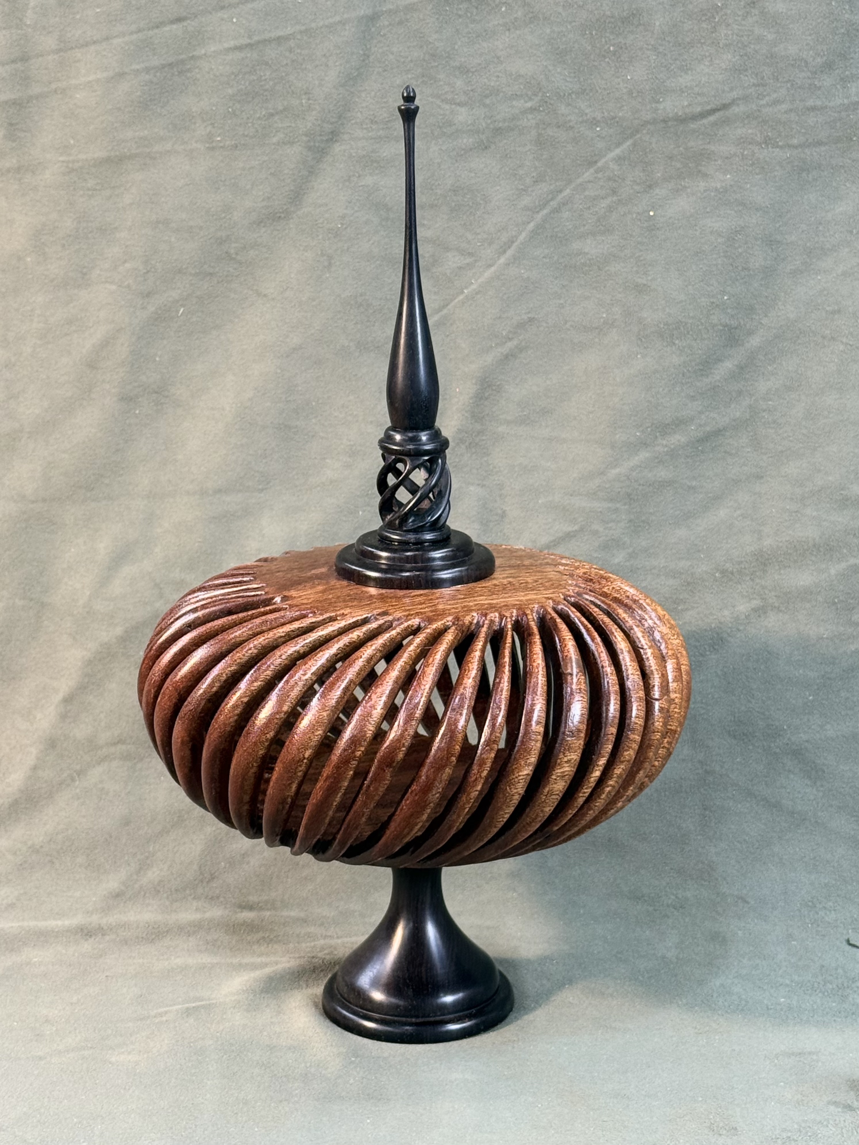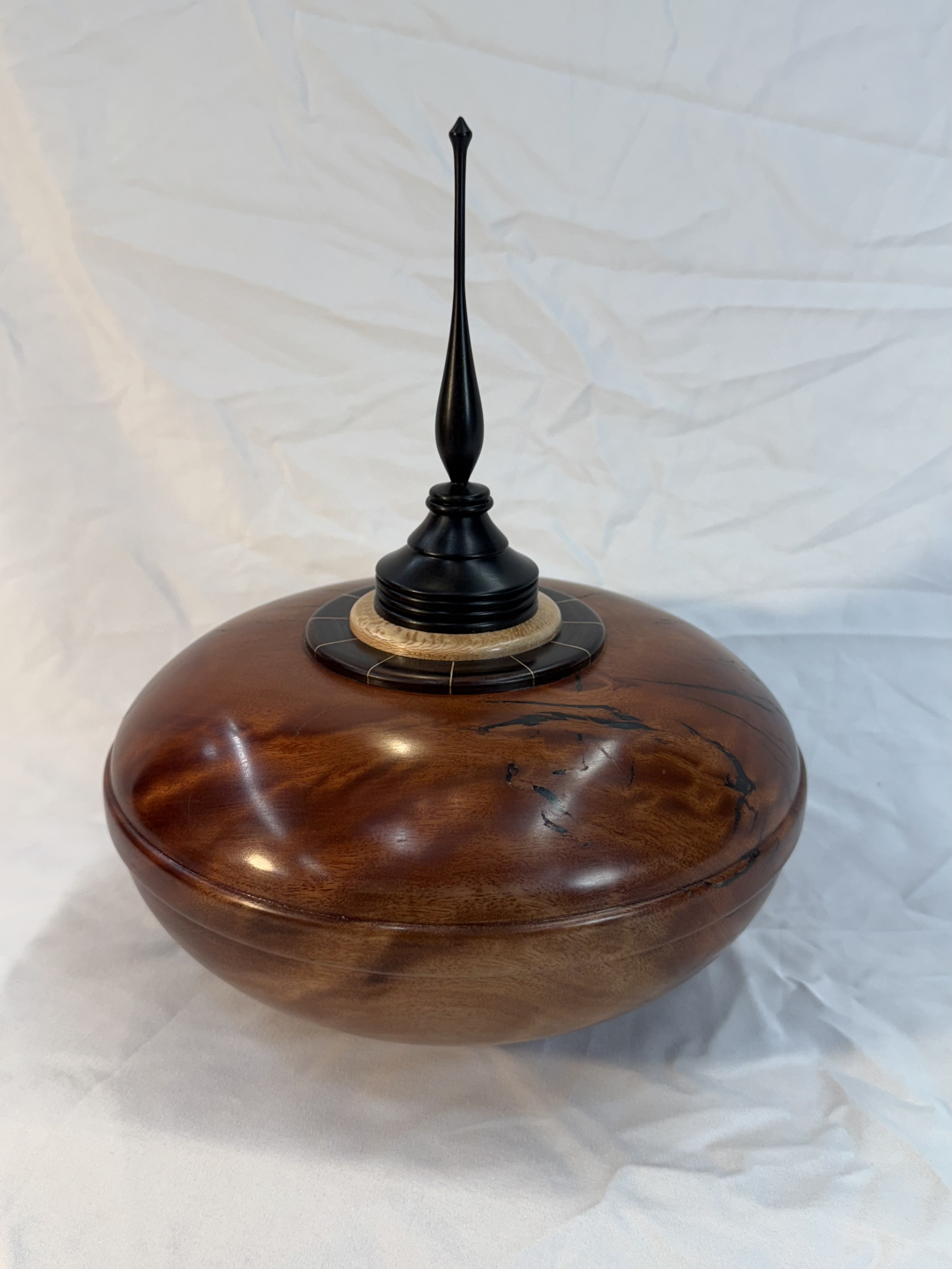 Japanese lantern lidded box. Claro walnut, sycamore, ebony, picture jasper.