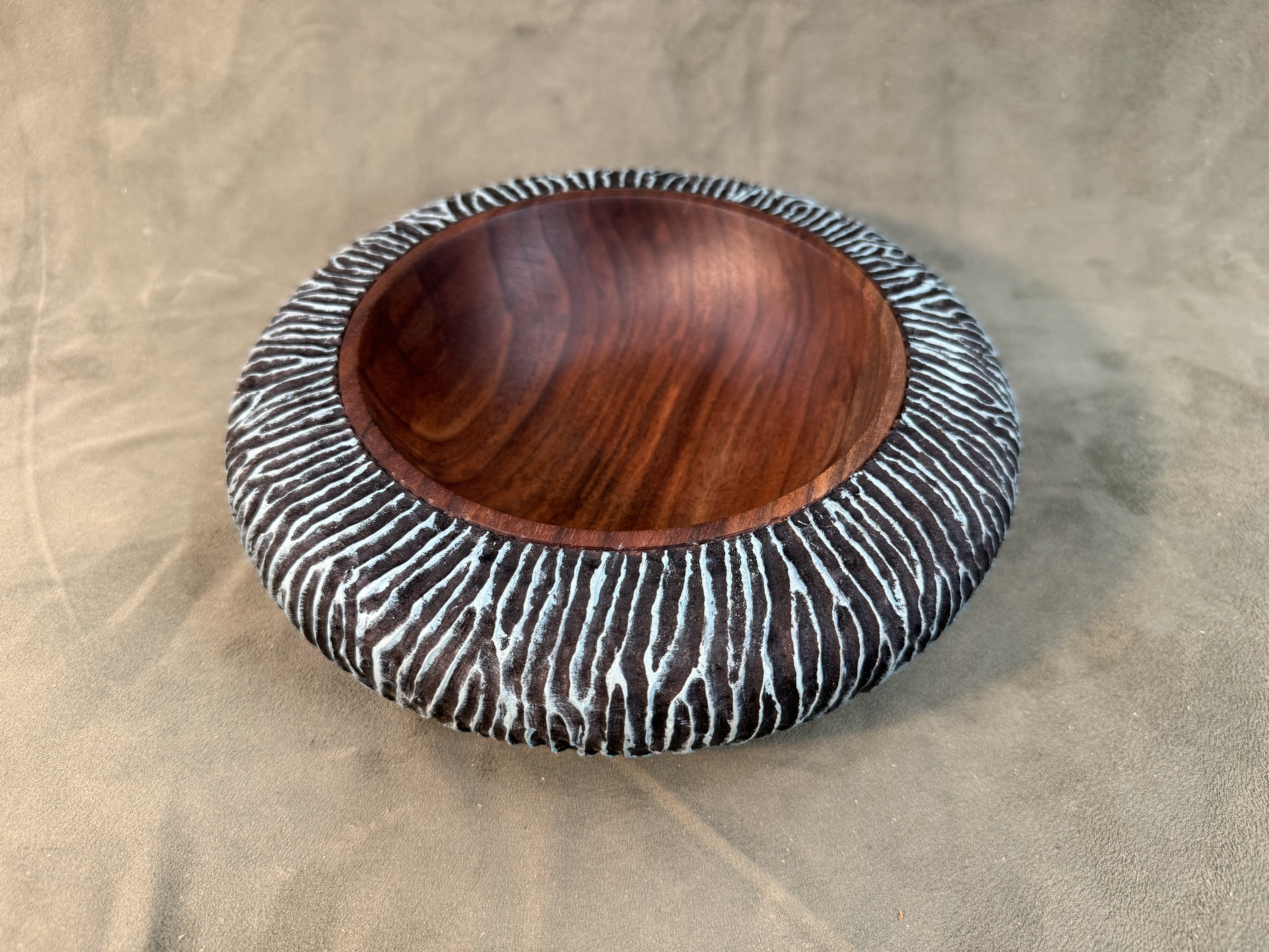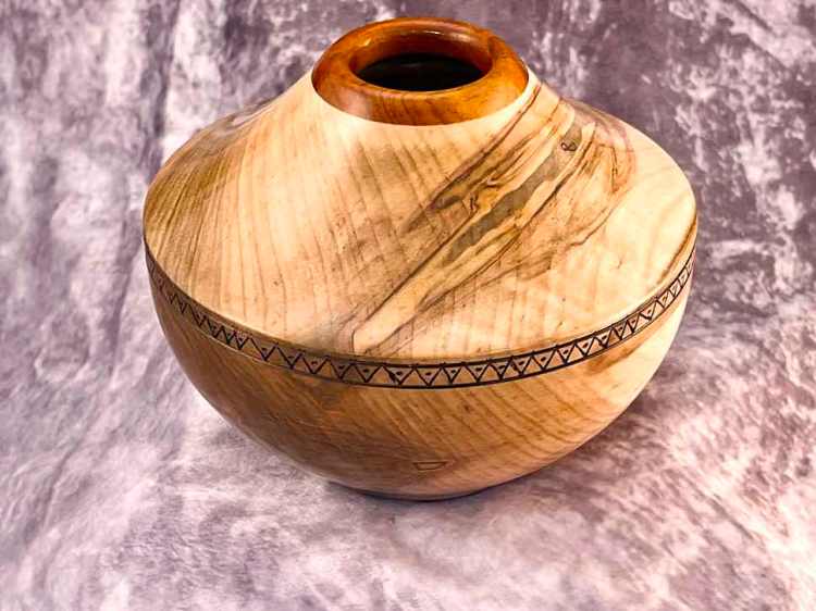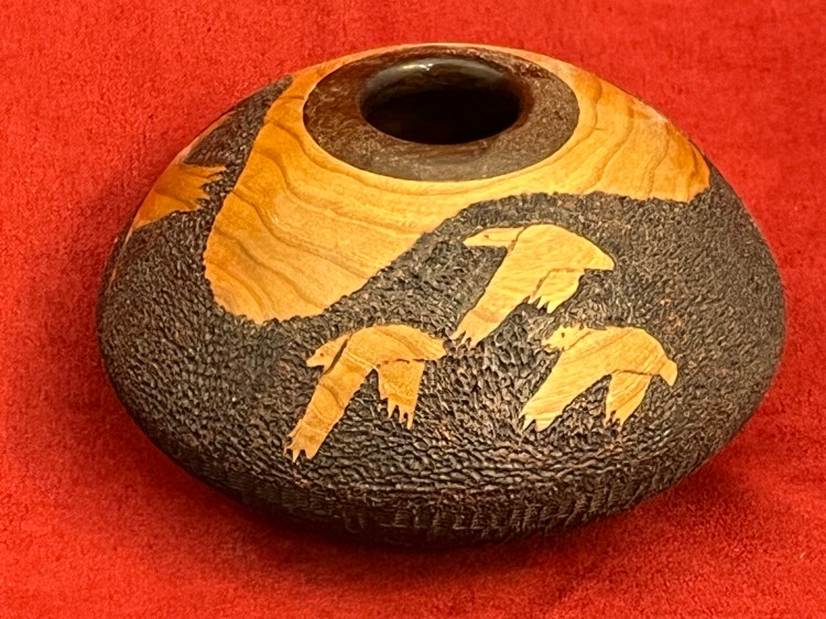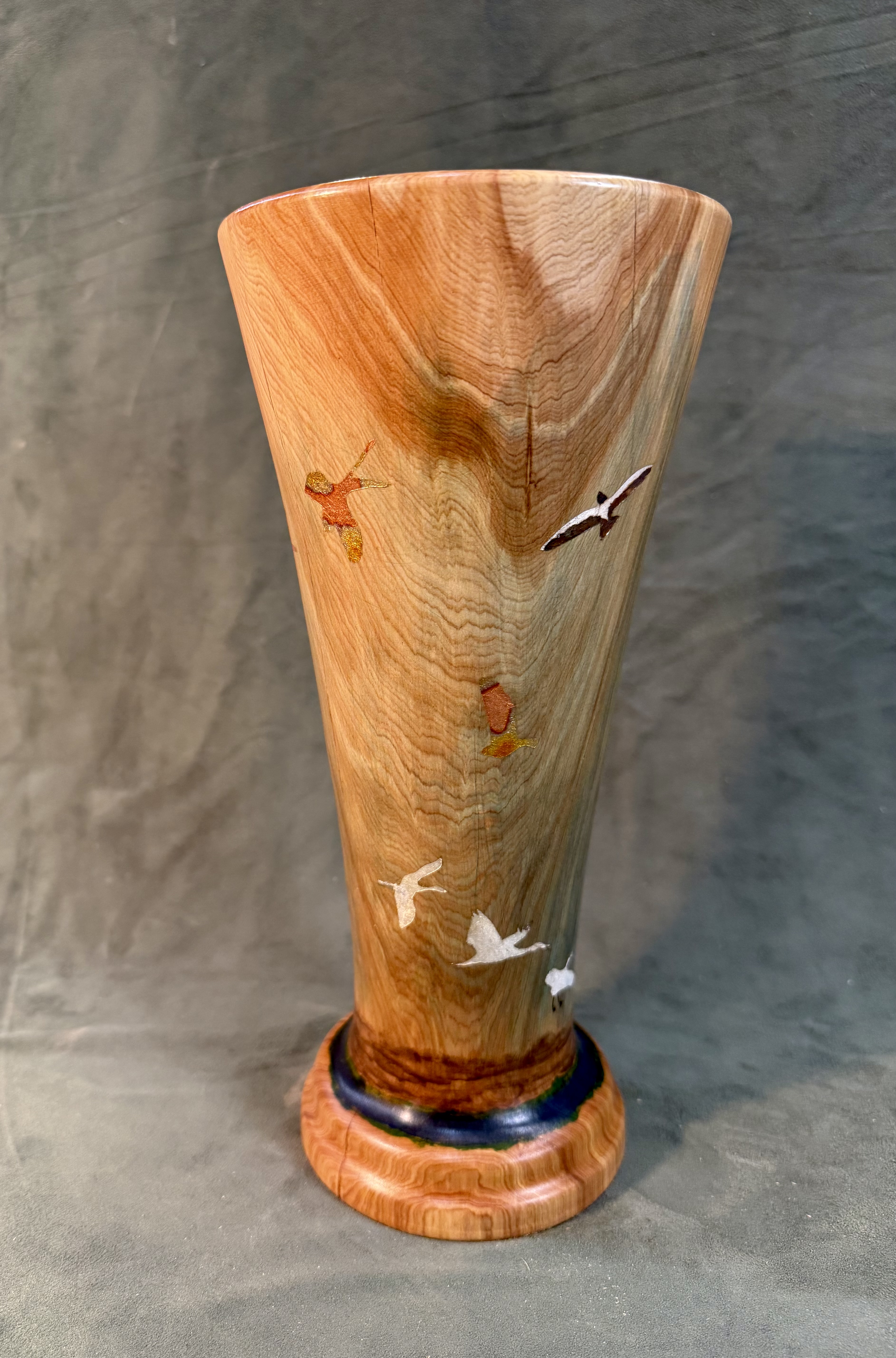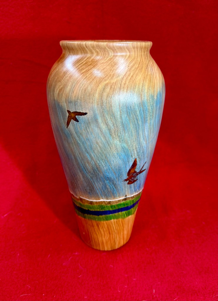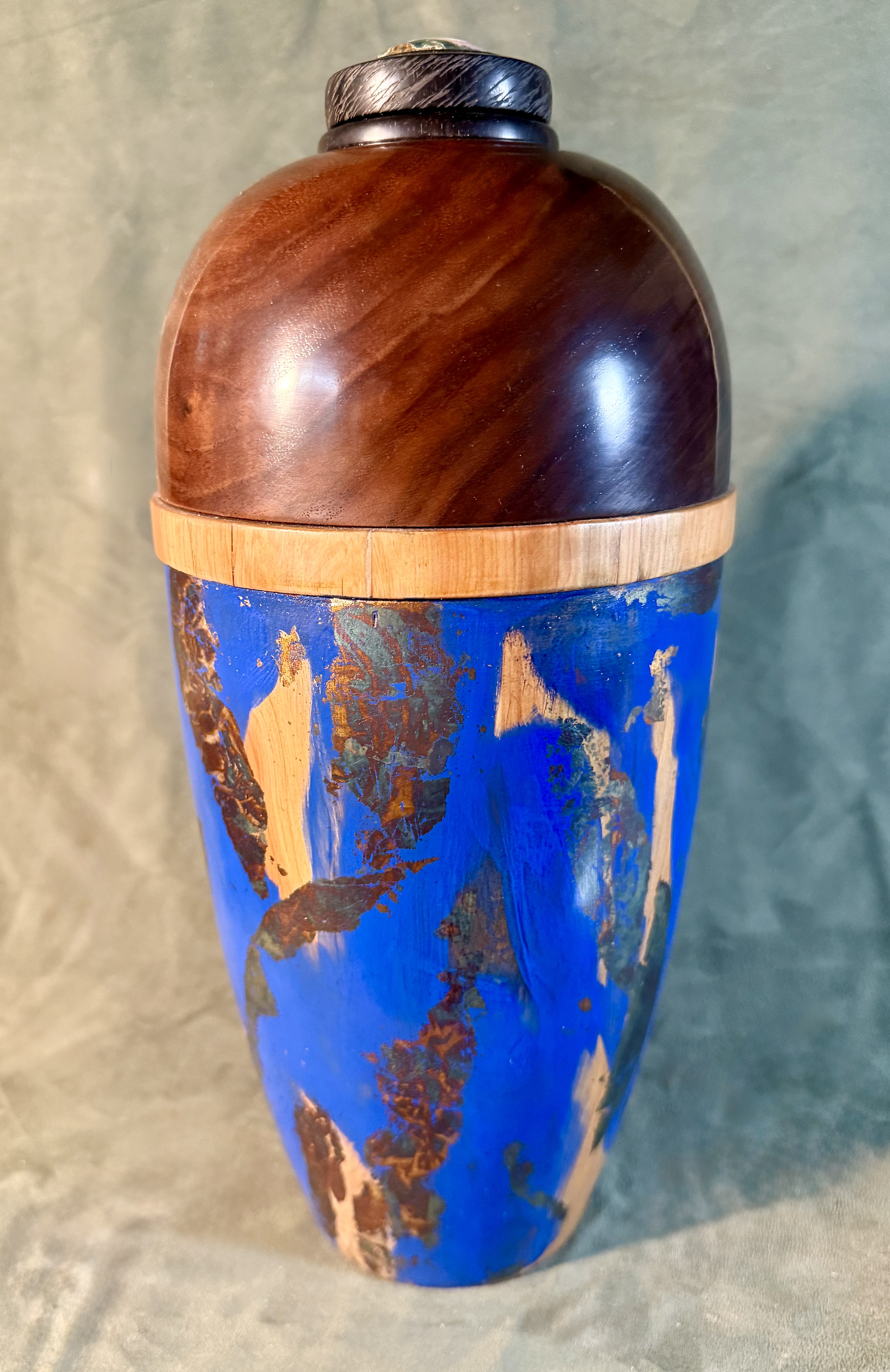Landscape Vase. Alligator juniper, silver leaf with patina, acrylic and dye.